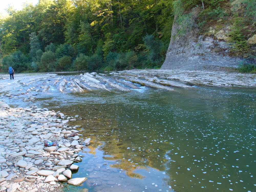 Виходи кам"яних пластів на річці нижче Кострино В.Березнянського району. В двух місцях ріка вимила дві ями глибиною біля 2-х метрів. Місце чудово виглядає при низькому рівні води. Лівий берег - скелястий, місцями прорізаний струмками аж до основи.